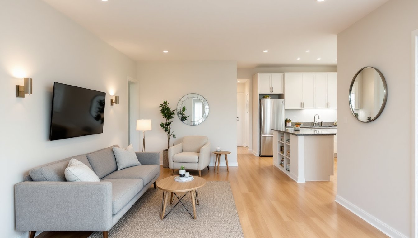 Open-concept living is the gold standard for small spaces, and it works because it eliminates visual barriers. Instead of boxing off the living room with walls, an open plan merges the living area with the kitchen or dining zone. This removes the sense of confinement and lets light travel freely through the entire space.